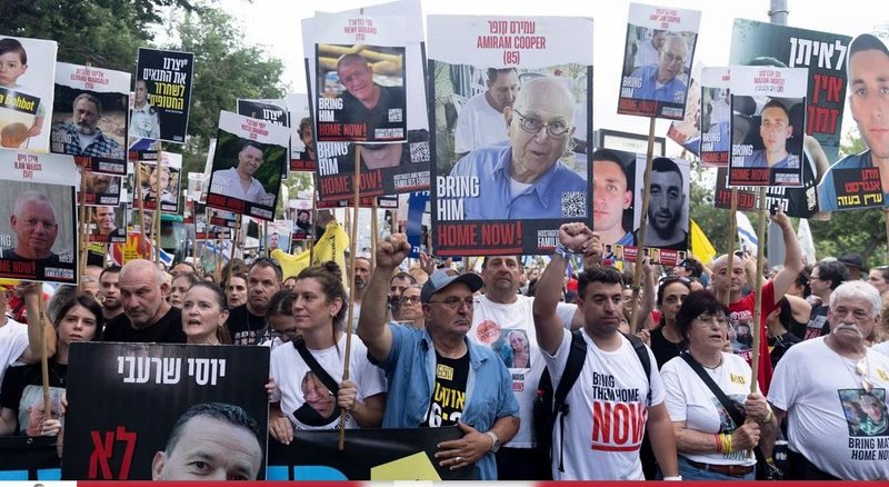 Demonstruesit po kërkojnë që t’i jepet fund luftës në Gaza në mënyrë që të gjitha pengjet të lirohen. Shumë kundërshtojnë ofensivën e planifikuar të madhe kundër Qytetit të Gazës, nga frika se kjo do të rrezikojë jetën e pengjeve.