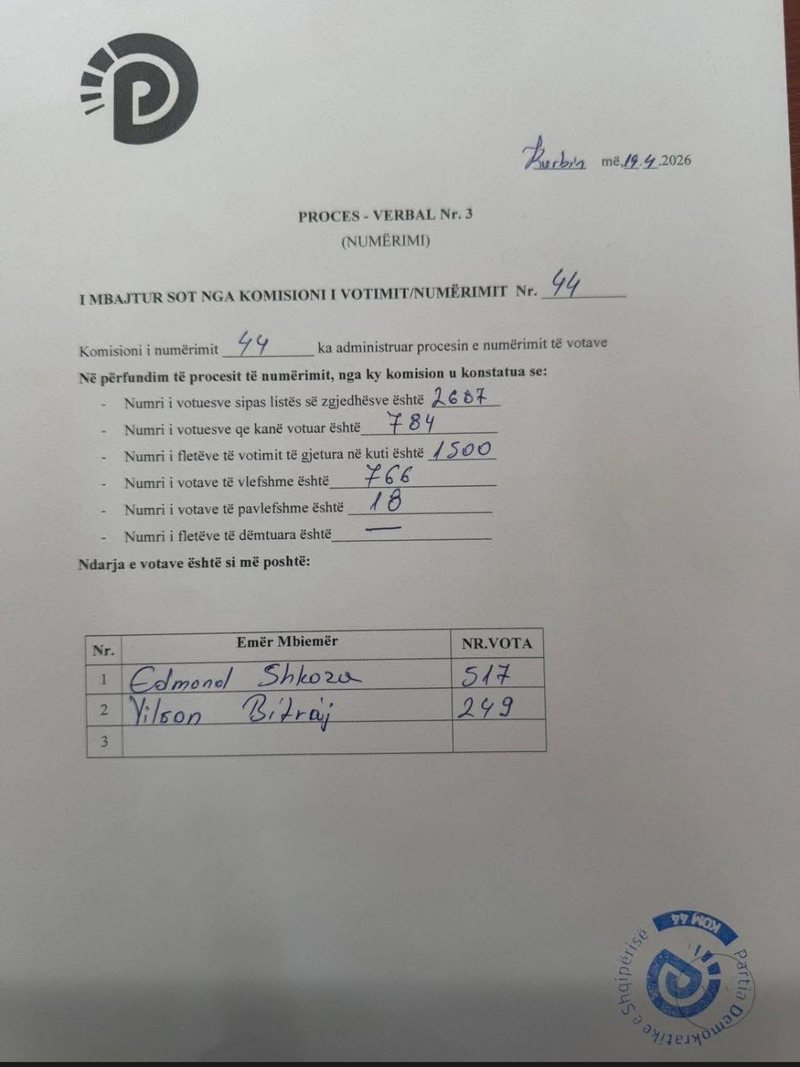Një procesverbal i zgjedhjeve për kryetar të degës së Partisë Demokratike në Kurbin ka ngritur pikëpyetje serioze mbi rregullsinë e procesit të votimit.
