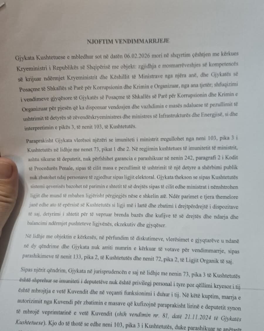 Më herët, Gjykata e Posaçme, në kërkesë të SPAK, kishte vendosur pezullimin e ministres Balluku nga detyra, pasi ndaj saj po zhvillohen hetime për ndërhyrje në të paktën 7 tendera, përfshirë Unazën e Madhe të Tiranës dhe tunelin e Llogarasë.