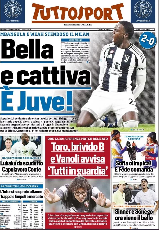 “Djallin, çfarë Juventusi” dhe “Napoli arratiset: ishin titujt kryesorë të La Gazzetta dello Sport.
