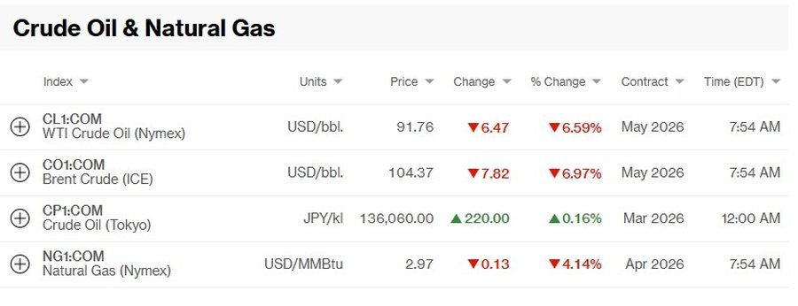 Nafta e papërpunuar Brent e Detit të Veriut shënoi një rënie prej më shumë se 7%, duke zbritur në 104.37 dollarë për fuçi.