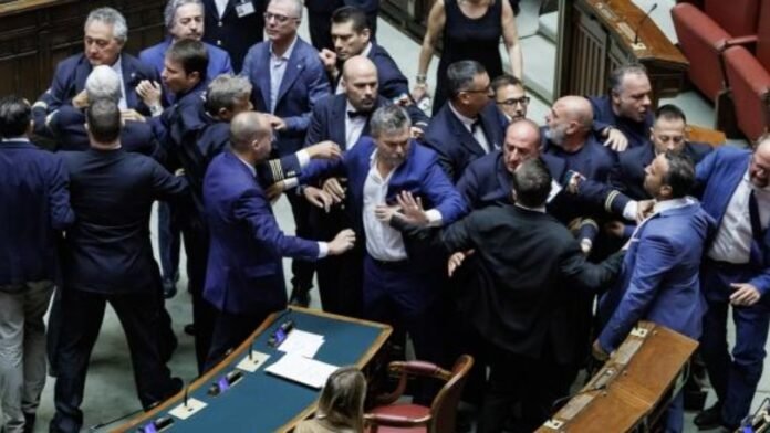 Deputetët e majtë, përfshirë emra si Fornaro, Cuperlo, Stumpo, Amendola dhe Elly Schlein, zbritën drejt bankave të qeverisë. Situata eskaloi dhe për pak u kthye në përleshje fizike. Komesarët e rendit parlamentar u detyruan të ndërhyjnë për të ndalur përplasjet dhe seanca u pezullua nga kryetari i Kuvendit, Sergio Costa.