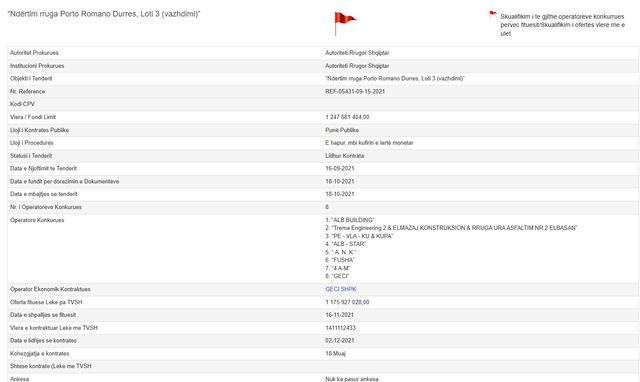 Hetimi i SPAK ka lidhur këto biseda me procedurën e prokurimit të Autoritetit Rrugor Shqiptar, të nisur më 15 shtator 2021, për Ndërtimin e rrugës Porto Romano Durrës, Loti 3 (vazhdimi). Në Buletinin nr. 167 të Agjencisë së Prokurimit Publik, rezulton se oferta fituese i është dhënë shoqërisë “Geci” sh.p.k., kompania e drejtuar nga Ram Geci, i cili është gjithashtu ortak i vetëm dhe administrator.