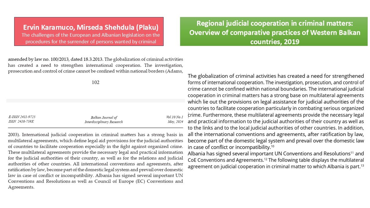 “Ervin Karamuco është emëruar nga rektori plagjiaturë, Artan Hoxha, si anëtar i ri i Këshillit të Etikës në Universitetin e Tiranës. Megjithatë, sic e shikoni nga fotot, z. Karamuco vetë ka botuar artikuj shkencorë me pjesë të tëra të kopjuara ‘fjalë për fjalë’ nga punimet e të tjerëve,” – shkruan Muka.