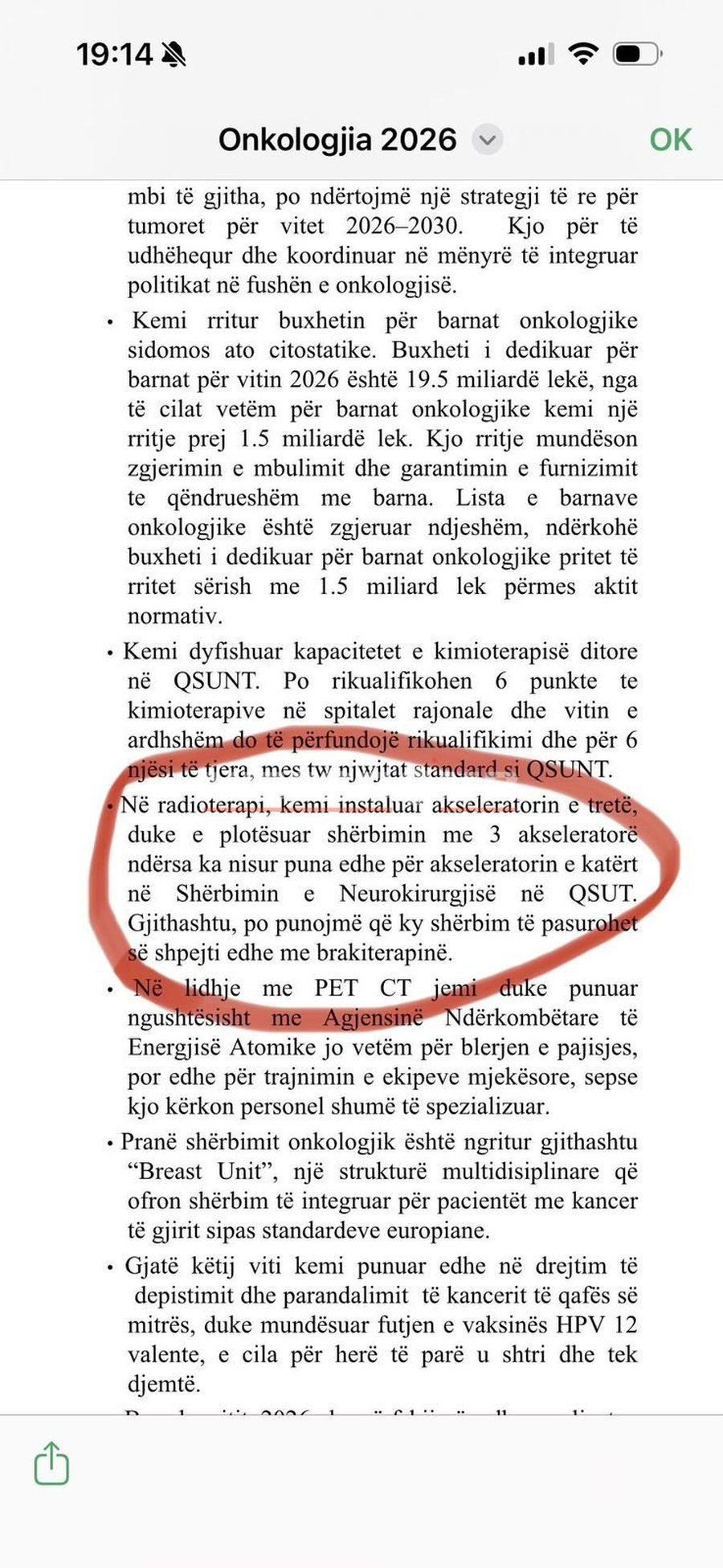 Në një deklaratë publike, ai thekson se sistemi shëndetësor shqiptar përballet me mungesë të theksuar akseleratorësh linearë dhe se kjo ndikon drejtpërdrejt në cilësinë e trajtimit të pacientëve.