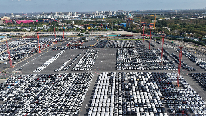 Automjetet e reja me energji presin dërgesën në një terminal eksporti automobilash, Shangai, Kinë, janar 2026. / Foto nga VCG