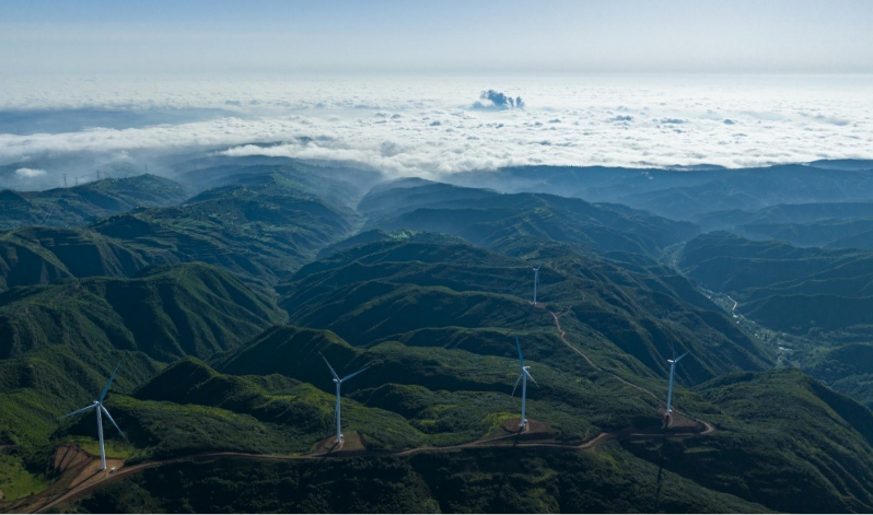 Turbinat me erë në qytetin Pingliang, Provinca Gansu, Kinë veriperëndimore, qershor, 2024. /Foto nga VCG