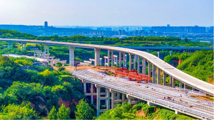 Pamje e vendit të ndërtimit të projektit të Autostradës Zhengzhou-LuoYang, në qytetin Luoyang, Provinca Henan e Kinës, shtator 2025. / Foto nga VCG