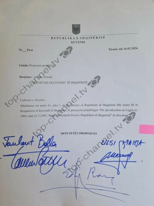 Shumica socialiste ka avancuar nismën për ndryshimin e nenit 242 të Kodit të Procedurës Penale, që lidhet me mundësinë e pezullimit të zyrtarëve shtetëror gjatë hetimeve. Dokumenti zyrtar, i publikuar nga TCH, mban firmat e kryeministrit Edi Rama, kryetarit të Partisë Socialiste Taulant Balla dhe deputetit Ulsi Manja, si nismëtarë të ndryshimit ligjor.