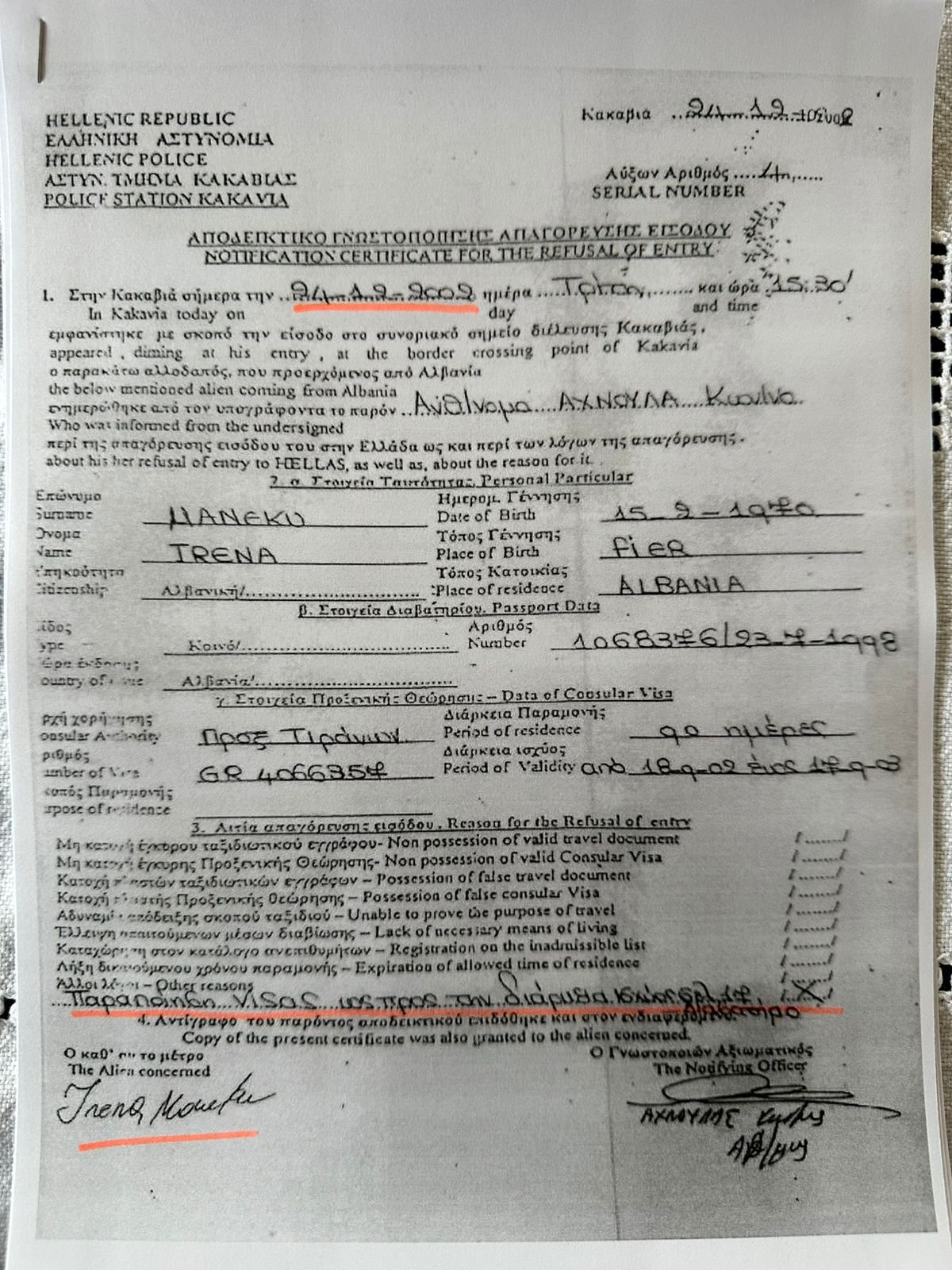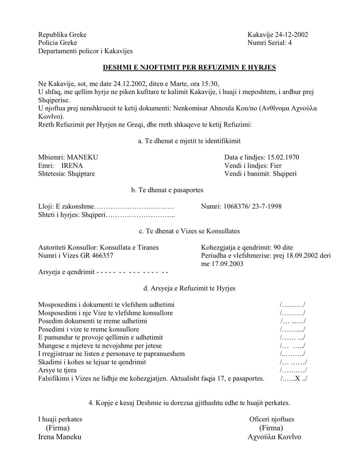 Ish-kryeministri Sali Berisha ka publikuar sot një dokument të cilin e cilësoi si certifikatë të policisë greke, që sipas tij vërteton përjashtimin nga territori grek të gjyqtares Irena Gjoka në vitin 2002, me akuzën e falsifikimit të vizave.