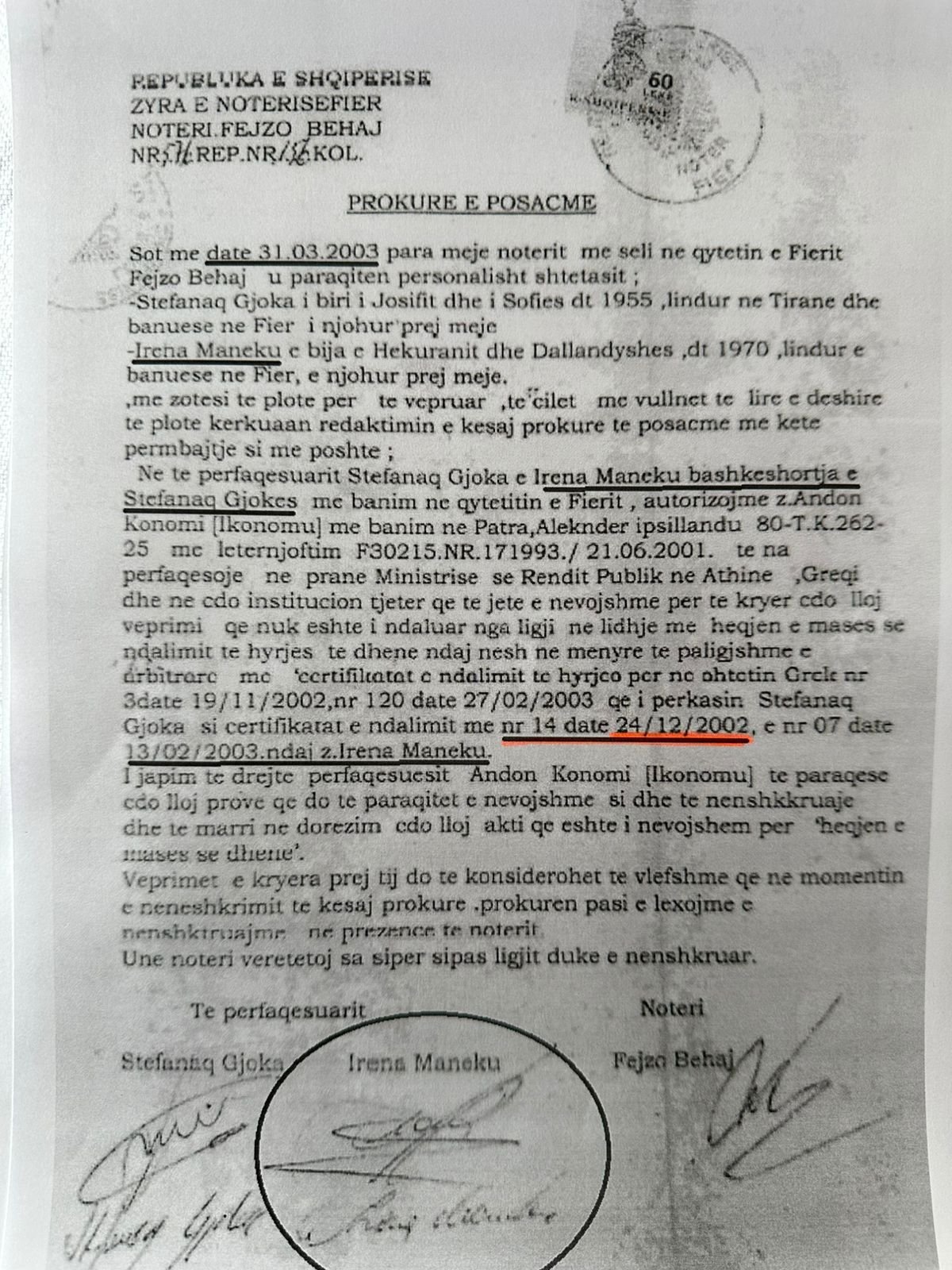 “Tani do t’ju njoh me dokumente të reja. Kam sjellë këtu certifikatën e datës 24.11.2002, me të cilën policia greke vërteton se e ka përzënë Irena Gjokën nga territori i shtetit grek si falsifikatore vizash. Pra, Irena Gjoka është futur në Greqi duke falsifikuar vizën. Këtu e keni greqisht dhe shqip, së bashku me përkthimin zyrtar,” deklaroi Berisha.