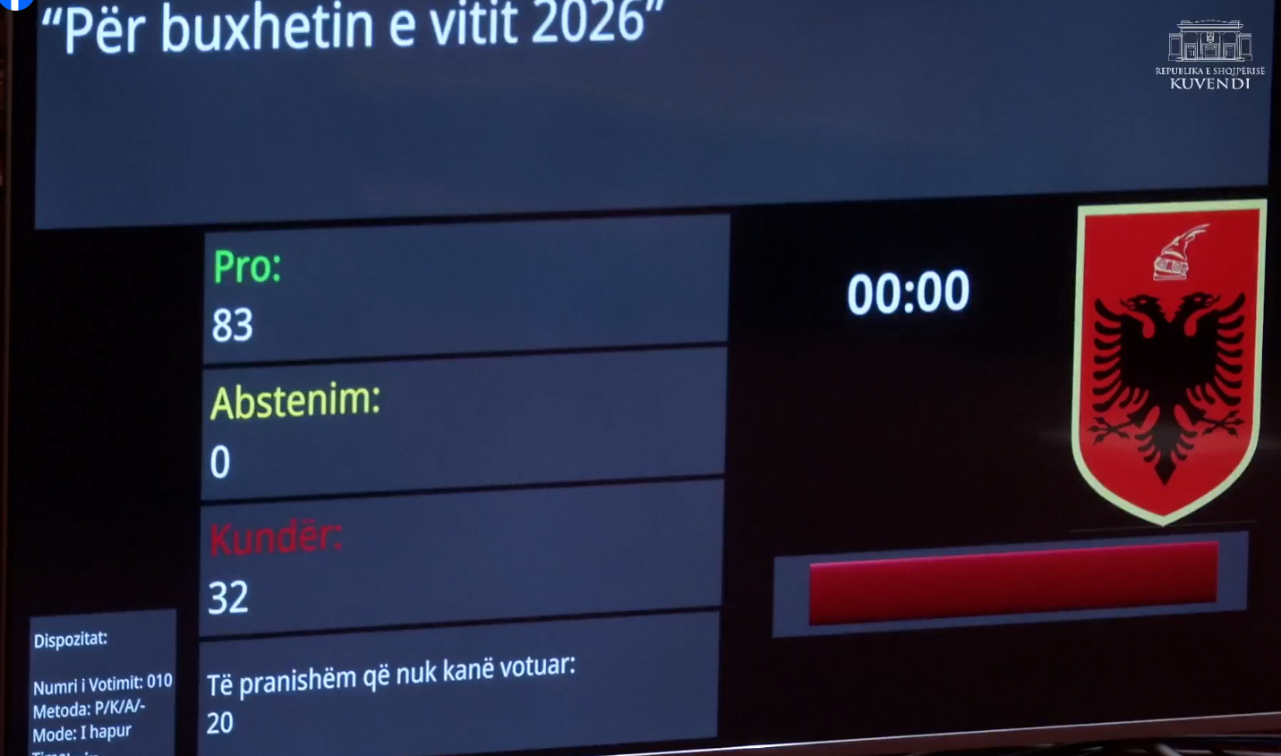 Me të njëjtën shumicë votash (83 pro, 32 kundër), Kuvendi miratoi: