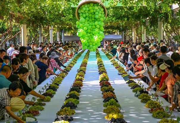 Një panair rrushi në Turpan, Rajoni Autonom Xinjiang Uygur i Kinës veriperëndimore, gusht 2024./Foto nga Xinhua